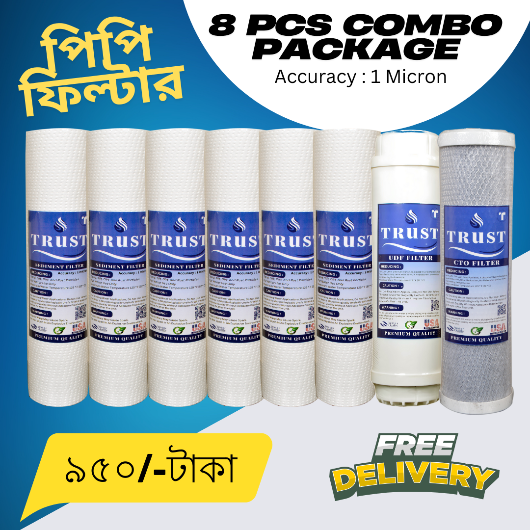 Trust – Water Filter 8 PCS Cartridge Full Package Premium Quality Accuracy : 1 Micron